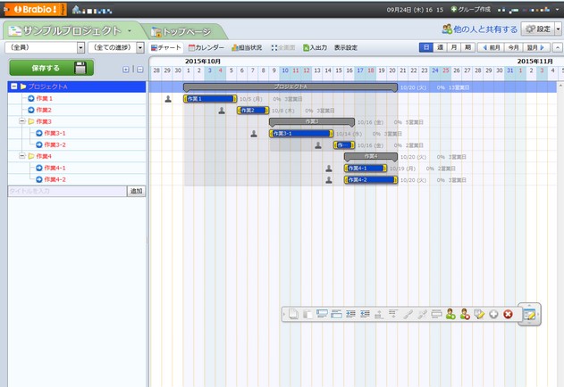 最初に紹介したガントチャートのサンプルもBrabio!で作成しました。